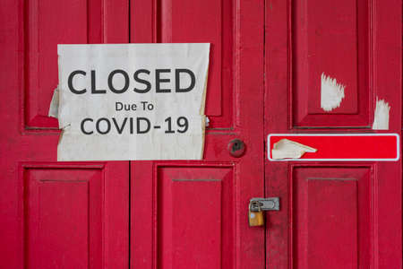 Red Closed sign on door entrance cafe restaurant or business office store is closed due to the effect of Coronavirus COVID-19 pandemic
