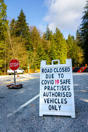 North Vancouver, Canada - Apr 7, 2020: Barricades control access to Mt. Seymour Provincial Park during Covid-19 pandemic