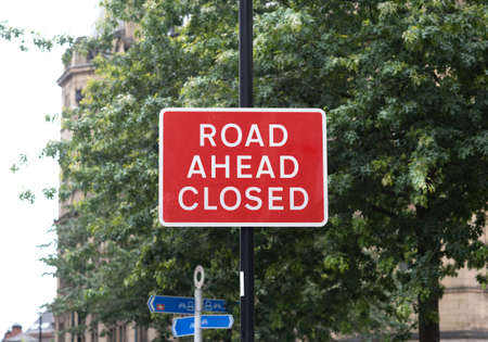 Road sign on a street showing a road closure