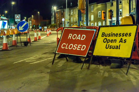 Road Closed and Business Open As Usual UK Roadworks Signs