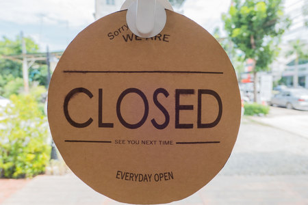 sorry we are closed sign hanging outside business office store shop or restaurant