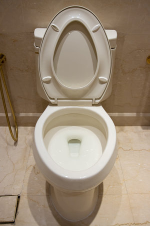 Toilet, Flushing Water, flush toilet, Closeup look at toilet, white toilet, White toilet in the bathroom, Top view of toilet bowl
