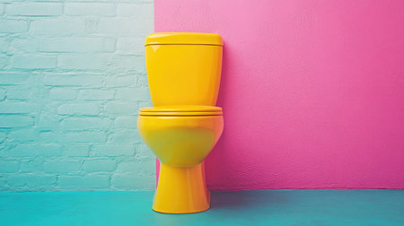 This vibrant image features a colorful toilet surrounded by a playful pink splash, set against a bold pink backdrop. Perfect for creative bathroom decor concepts.