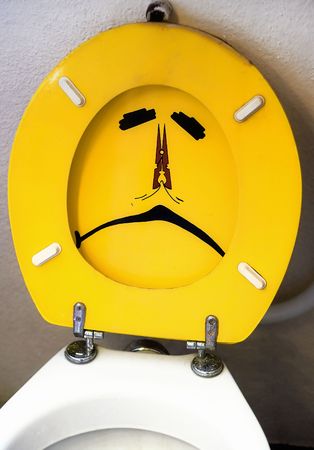 Humor over run out of toilet paper. The concept of a funny toilet with eyes and tongue.