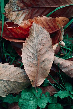 brown leaf with autumn colors in the nature, autumn season