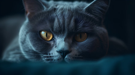 Portrait of a blue cat with yellow eyes on a blue background