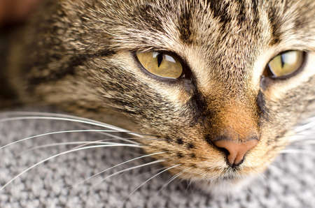 Tabby cat side head close up