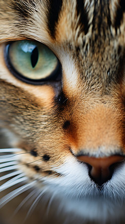 Macro shot capturing the sharp details and mesmerizing eyes of a domestic cat