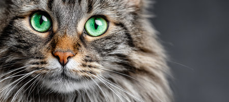 A Charming Maine Coon Cat with Expressive Eyes Against Background. Stunning Feline Close-up