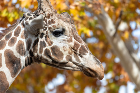 Close up portrait of a giraffe camelopardalis in nature and zoo