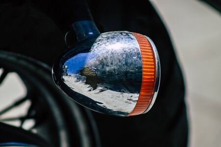 Closeup of a motorcycle parked in the streets of Limassol in Cyprus island