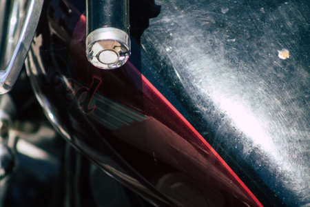 Limassol Cyprus May 21, 2020 Closeup of a motorcycle parked in the streets of Limassol in Cyprus island