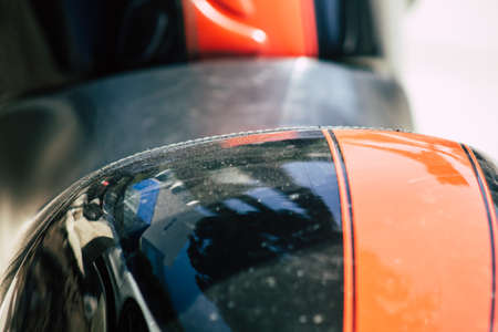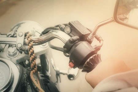 Motorcycle handlebar start stop system. Close up detail of racing motorcycle handlebar. Selective focus for background. Motorsport background concept.