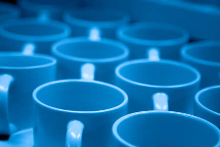 many of the same white mugs for drinks, coffee or tea. stand upside down in a drawer