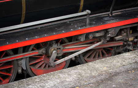 Wheels of an old retro steam train locomotive.