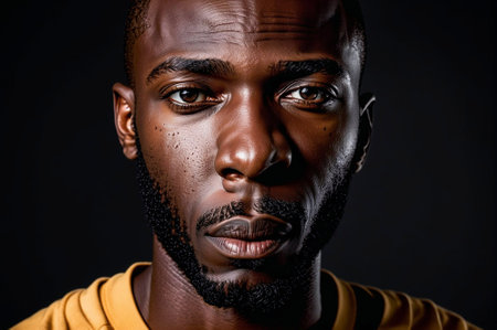 Portrait of a person of African ethnicity with bright facial features, an expression of warmth and confidence. Ethnic style and culture.
