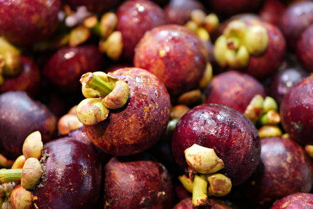 mangoesteen in pile, closeup shot