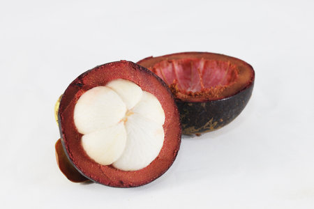 Mangosteen fruit cut on white background.