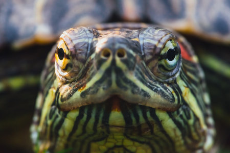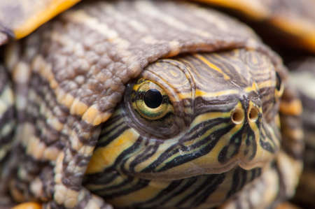 eyes of red-eared slider turtle, macro view