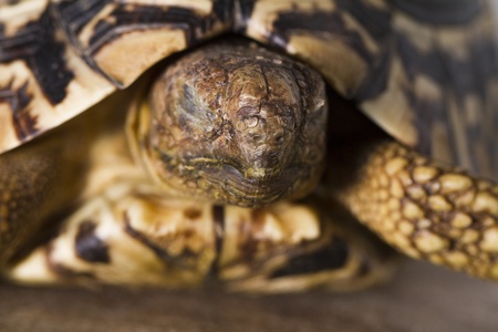 Close up view of a leopard tortoise