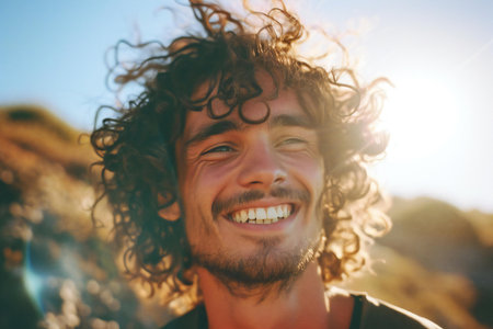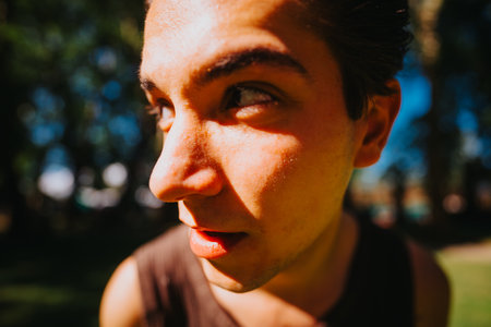 Close-up portrait of a young man enjoying sunny day in the park