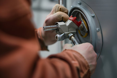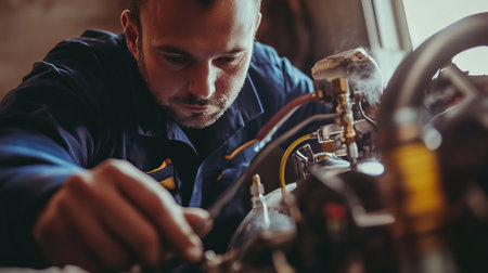 Male engineer working on complex machinery, showcasing precision and expertise.