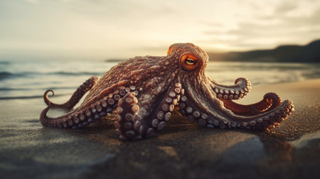 In the depths of the studio, the enigmatic octopus mesmerizes with its elegant tentacles. AI Generated.