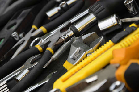 Tools in auto repair service. Service station close up