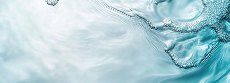 Abstract background with water ripples and bubbles on a white surface. Water texture banner with copy space for design, concept of nature, fresh, healthy lifestyle, or spa. Photo-realistic, soft shadow, top view, hyper-detailed, beautiful colors. --ar 83:30 --v 6.1 Job ID: d4fd022f-34c2-4dc2-ad30-6e32cdef01af