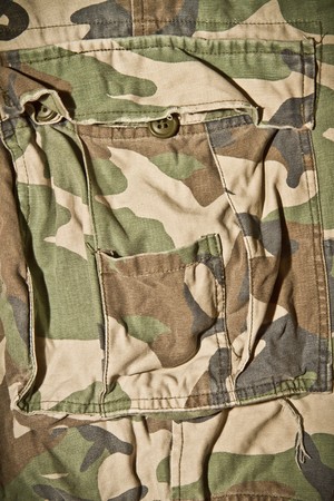 Camouflage fabric texture background. Soft selective focus and shallow depth of field