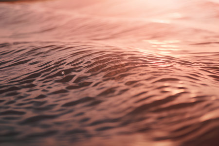 A tranquil image of gentle water surface reflecting soft sunlight, creating serene ripples and calming patterns that evoke peace and relaxation during golden hour.