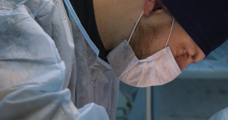 Skilled surgeon expertly performing intricate operation in a state of the art operating room