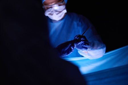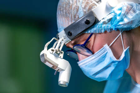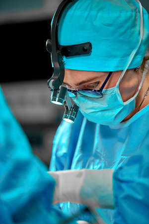 Portrait of Surgeon performing surgery on pacient in hospital operating room.