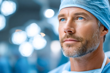 Portrait of a surgeon in a well lit modern operating room capturing medical expertise and precision