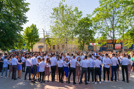 May 30, 2023 Beltsy, Moldova. For illustrative editorial use. Homecoming dance at school