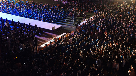 HO CHI MINH CITY, VIET NAM- MAR 29 Outdoor stage at night to respond earth hour campaign, worldwide event, crowded atmosphere, dense young volunteers sitting on ground, Sai Gon, Vietnam, Mar 29, 2014