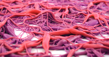 Microscopic view of small interfering RNA molecules forming a complex with proteins involved in the RNA interference pathway