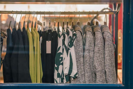 clothes on hangers in a clothing store, vintage color tone