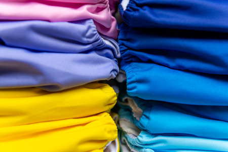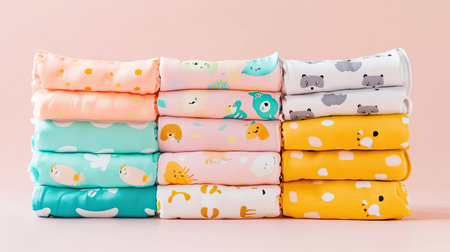 stacked cloth diapers in various colors and patterns, created with generative ai
