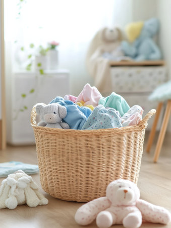 Basket of Colorful Eco-Friendly Washable Diapers in a Bright Room