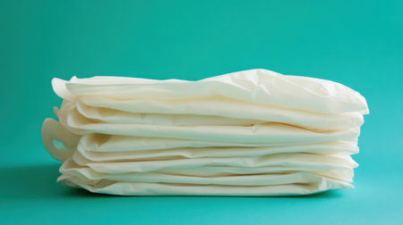 This image features neatly stacked sheets of soft plastic in a creamy color, placed against a vibrant turquoise background, ideal for design projects and creative inspiration.