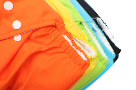 Reusable diapers in the copy space stack . An article about reusable diapers. Saving on diapers. concern for the environment. Eco products. Breathable diapers with buttons.