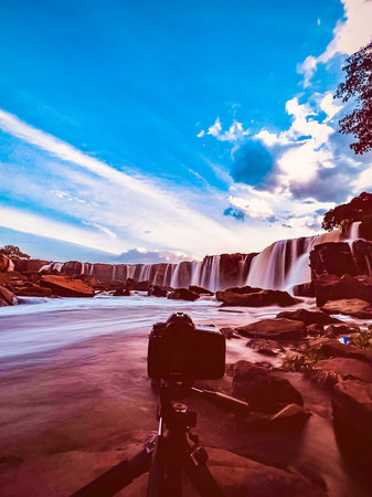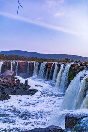 The beautiful scenery of amazing and breathtaking large waterfalls in the wild