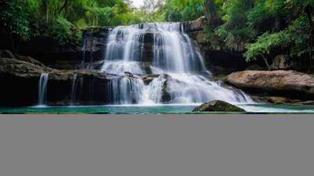 Beautiful waterfall in the forest, long exposure photo, soft focus