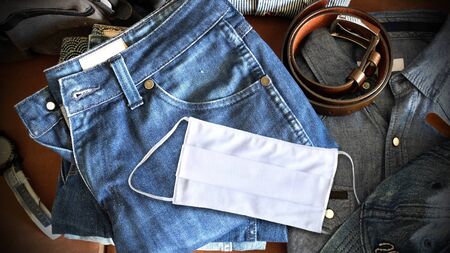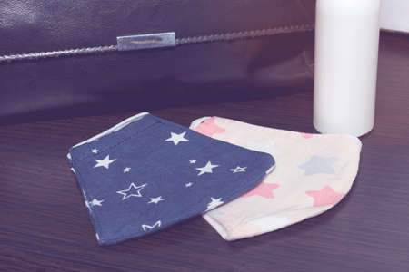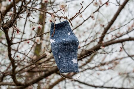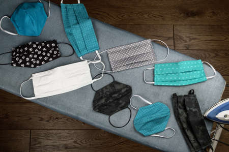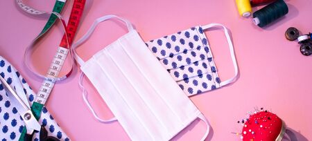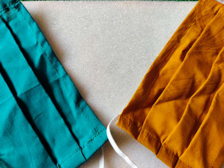 Masks for to protect from covid-19, handmade, textured background, empty copy space for text