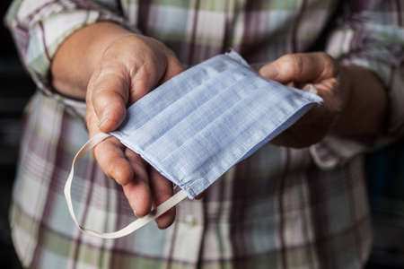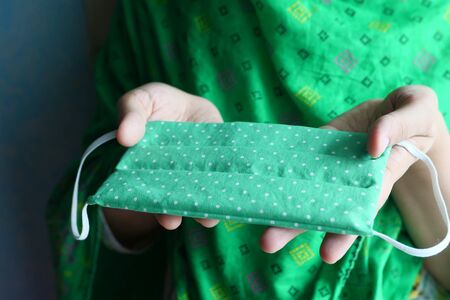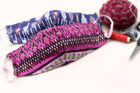 DIY handmade protective face masks in Thailand. Thai people make own fabric masks because of a shortage of recommended supplies.