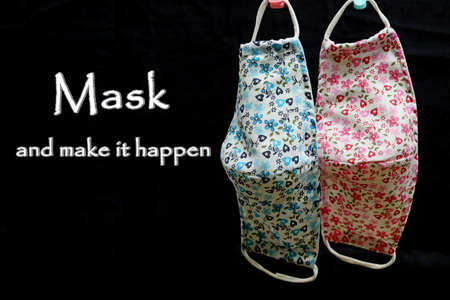 Quote with mask and Covid-19 (Coronavirus) pandemic. DIY cloth face masks on black background.