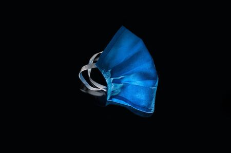 Used medical face mask, on a black background. Disposable surgical face mask cover mouth and nose.