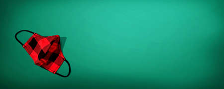 Banner with copy space for text of protective medical face mask isolated on deep black background