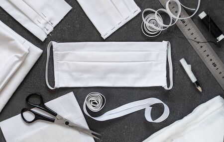 Making DIY masks at home sewing fabric mask handmade cotton protective equipment.